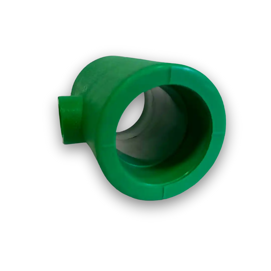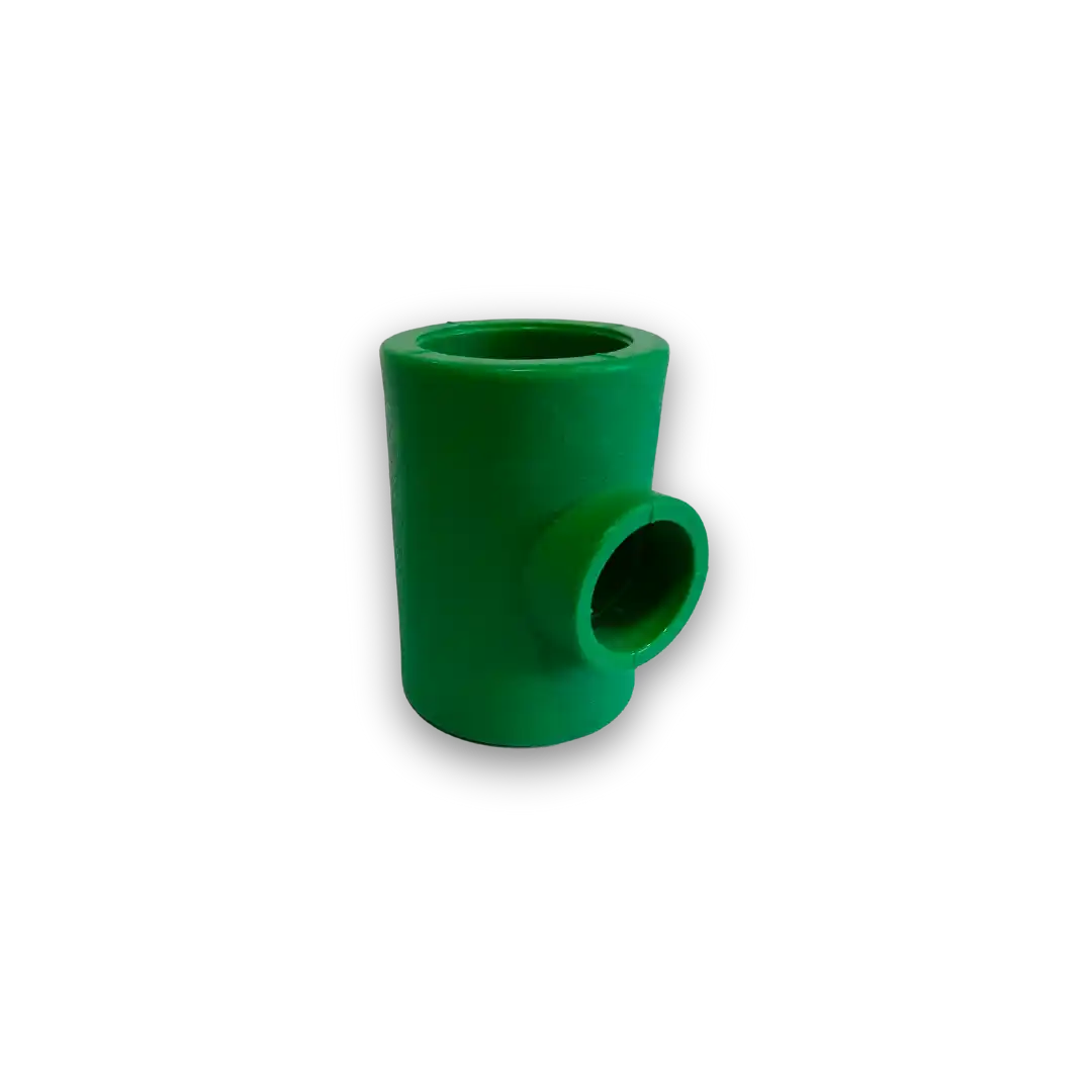 The PPR Reducer Tee is a specialized fitting designed to connect three pipes of different diameters at a 90-degree angle in PPR piping systems. Manufactured from high-quality Polypropylene Random Copolymer (PPR), this reducer tee is engineered to provide superior strength, corrosion resistance, and long-term durability, making it an ideal choice for various plumbing applications.